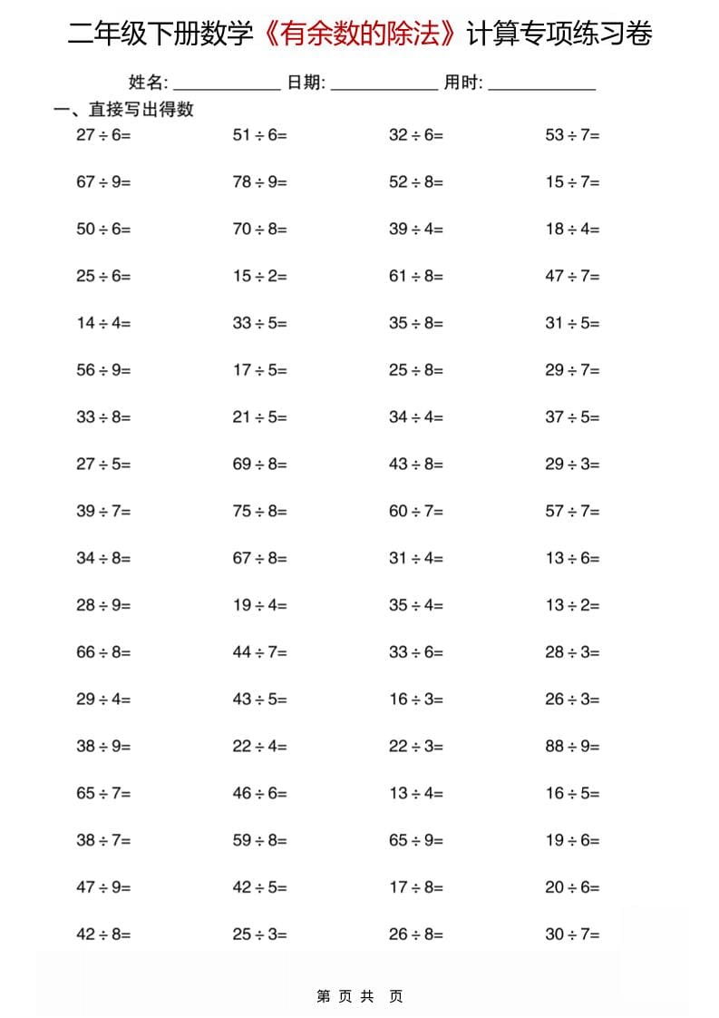 二年级下数学《有余数的除法》计算专项练习卷青禾2026年2月7日更新关注私信5540 ——预览已结束,还剩28页未读——您已获得此文档下载权限,请点击底部下载完整文档 二年级下数学《有余数的除法》计算专项练习卷此内容为付费资源,请付费后查看🌱17.2资源会员免费社区会员免费立即购买您当前未登录!建议登陆后购买,可保存购买订单3457199952遇到资源链接失效请联系站长!付费资源© 版权声明 版权声明 1 本站名称: 青禾学社 2 本站网址:vip.72ww.cn 3 本站一切资源不代表本站立场,并不代表本站赞同其观点和对其真实性负责。 4 本站附件资源、教程等内容如因时效原因失效或不可用,请联系站长及时更新。 5 本站一律禁止以任何方式发布或转载任何违法的相关信息,访客发现请向站长举报。 6 本站文章部分内容可能来源于网络,仅供大家学习与参考,如有侵权,请联系站长进行删除处理。 THE END二年级数学 喜欢就支持一下吧 分享QQ空间微博QQ好友海报分享复制链接收藏