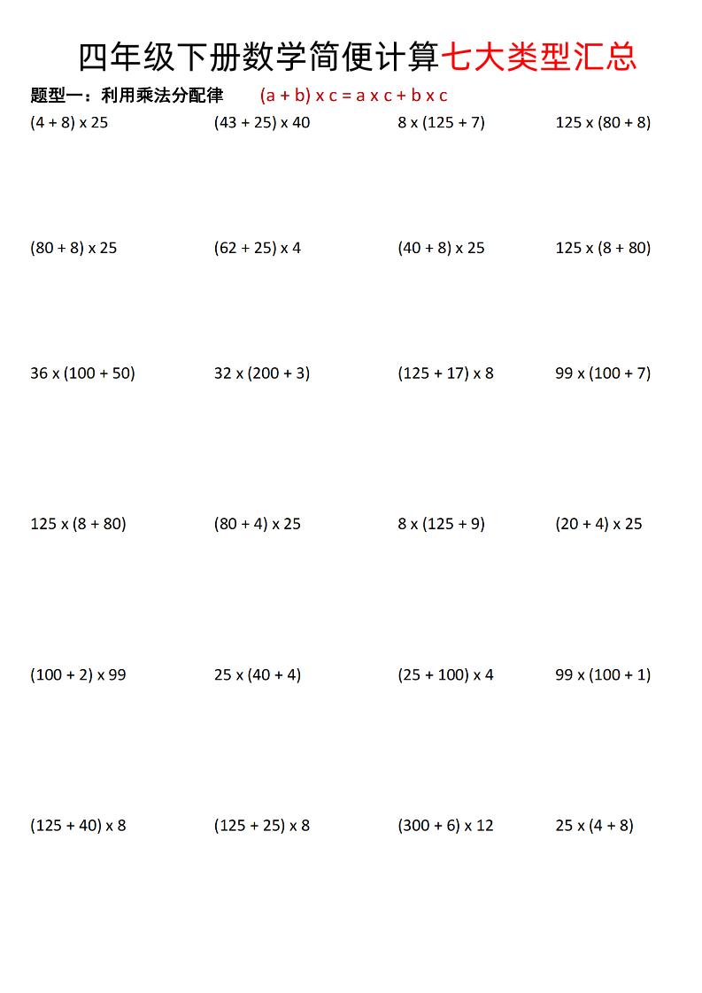 四年级下数学简便计算七大类型汇总青禾2025年4月27日更新关注私信5371 ——预览已结束,还剩4页未读——开通会员后可免费下载高清完整文档 四年级下数学简便计算七大类型汇总此内容为付费资源,请付费后查看🌱17.2资源会员免费社区会员免费立即购买您当前未登录!建议登陆后购买,可保存购买订单3457199952遇到资源链接失效请联系站长!付费资源© 版权声明 版权声明 1 本站名称: 青禾学社 2 本站网址:vip.72ww.cn 3 本站一切资源不代表本站立场,并不代表本站赞同其观点和对其真实性负责。 4 本站附件资源、教程等内容如因时效原因失效或不可用,请联系站长及时更新。 5 本站一律禁止以任何方式发布或转载任何违法的相关信息,访客发现请向站长举报。 6 本站文章部分内容可能来源于网络,仅供大家学习与参考,如有侵权,请联系站长进行删除处理。 THE END四年级数学 喜欢就支持一下吧 分享QQ空间微博QQ好友海报分享复制链接收藏