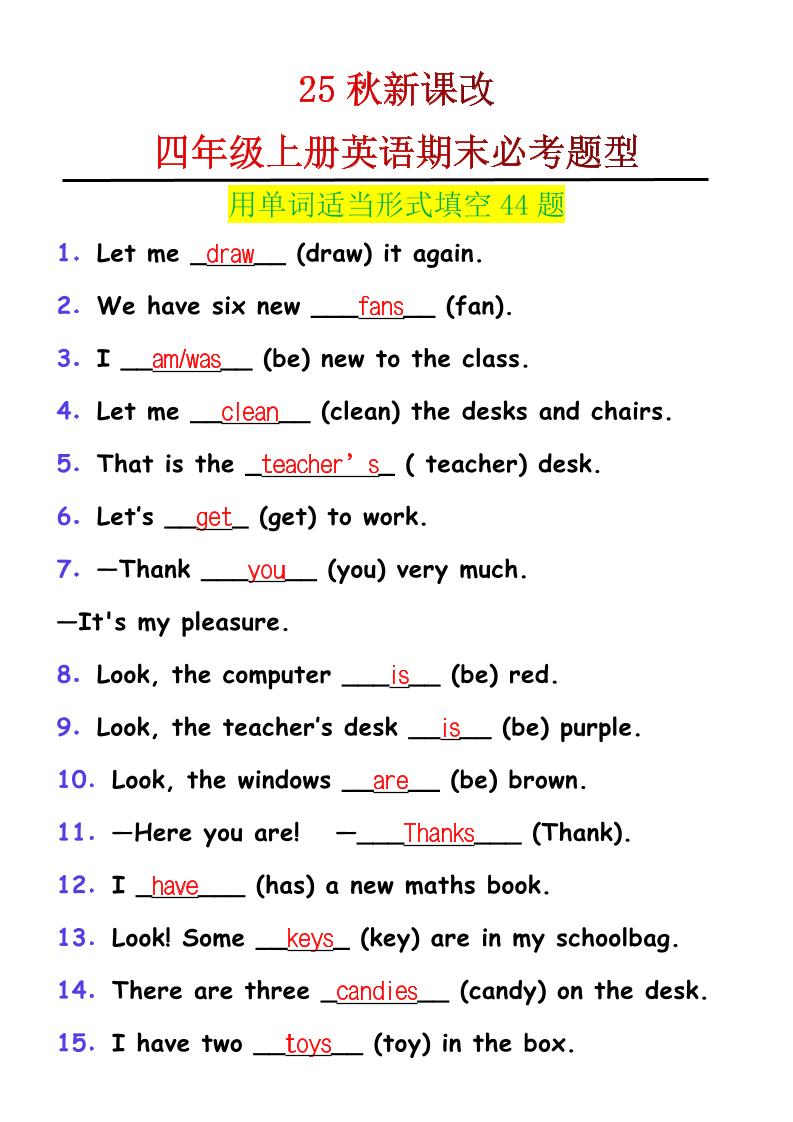 【2025秋新版】四年级上册英语用单词适当形式填空44题青禾2025年8月29日更新关注私信5799 ——预览已结束,还剩2页未读——开通会员后可免费下载高清完整文档 【2025秋新版】四年级上册英语用单词适当形式填空44题此内容为付费资源,请付费后查看🌱17.2资源会员免费社区会员免费立即购买您当前未登录!建议登陆后购买,可保存购买订单3457199952遇到资源链接失效请联系站长!付费资源© 版权声明 版权声明 1 本站名称: 青禾学社 2 本站网址:vip.72ww.cn 3 本站一切资源不代表本站立场,并不代表本站赞同其观点和对其真实性负责。 4 本站附件资源、教程等内容如因时效原因失效或不可用,请联系站长及时更新。 5 本站一律禁止以任何方式发布或转载任何违法的相关信息,访客发现请向站长举报。 6 本站文章部分内容可能来源于网络,仅供大家学习与参考,如有侵权,请联系站长进行删除处理。 THE END四年级英语 喜欢就支持一下吧 分享QQ空间微博QQ好友海报分享复制链接收藏