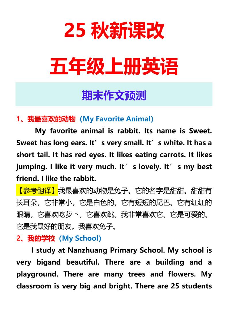 【2025秋新版】五年级上册英语期末作文预测青禾2025年8月30日更新关注私信5548 ——预览已结束,还剩2页未读——开通会员后可免费下载高清完整文档 【2025秋新版】五年级上册英语期末作文预测此内容为付费资源,请付费后查看🌱17.2资源会员免费社区会员免费立即购买您当前未登录!建议登陆后购买,可保存购买订单3457199952遇到资源链接失效请联系站长!付费资源© 版权声明 版权声明 1 本站名称: 青禾学社 2 本站网址:vip.72ww.cn 3 本站一切资源不代表本站立场,并不代表本站赞同其观点和对其真实性负责。 4 本站附件资源、教程等内容如因时效原因失效或不可用,请联系站长及时更新。 5 本站一律禁止以任何方式发布或转载任何违法的相关信息,访客发现请向站长举报。 6 本站文章部分内容可能来源于网络,仅供大家学习与参考,如有侵权,请联系站长进行删除处理。 THE END五年级英语 喜欢就支持一下吧 分享QQ空间微博QQ好友海报分享复制链接收藏