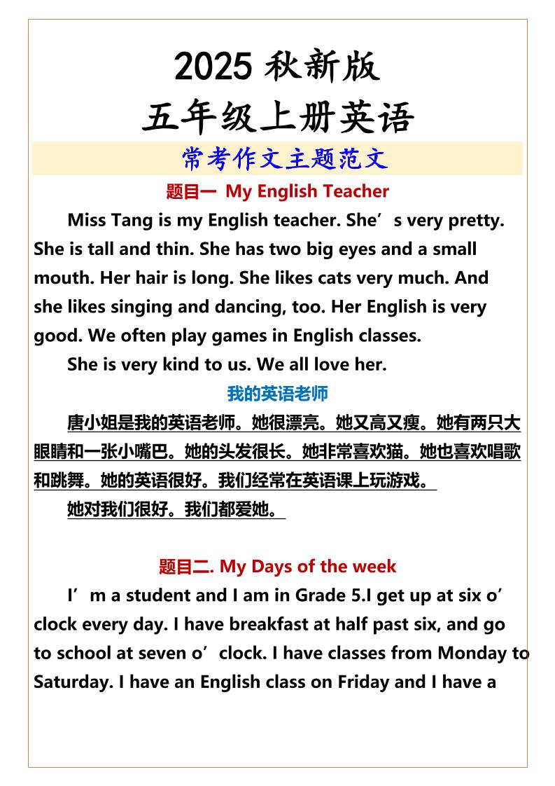 【2025秋新版】五年级上册英语常考作文主题范文青禾2025年8月30日更新关注私信4031 ——预览已结束,还剩2页未读——开通会员后可免费下载高清完整文档 【2025秋新版】五年级上册英语常考作文主题范文此内容为付费资源,请付费后查看🌱17.2资源会员免费社区会员免费立即购买您当前未登录!建议登陆后购买,可保存购买订单3457199952遇到资源链接失效请联系站长!付费资源© 版权声明 版权声明 1 本站名称: 青禾学社 2 本站网址:vip.72ww.cn 3 本站一切资源不代表本站立场,并不代表本站赞同其观点和对其真实性负责。 4 本站附件资源、教程等内容如因时效原因失效或不可用,请联系站长及时更新。 5 本站一律禁止以任何方式发布或转载任何违法的相关信息,访客发现请向站长举报。 6 本站文章部分内容可能来源于网络,仅供大家学习与参考,如有侵权,请联系站长进行删除处理。 THE END五年级英语 喜欢就支持一下吧 分享QQ空间微博QQ好友海报分享复制链接收藏
